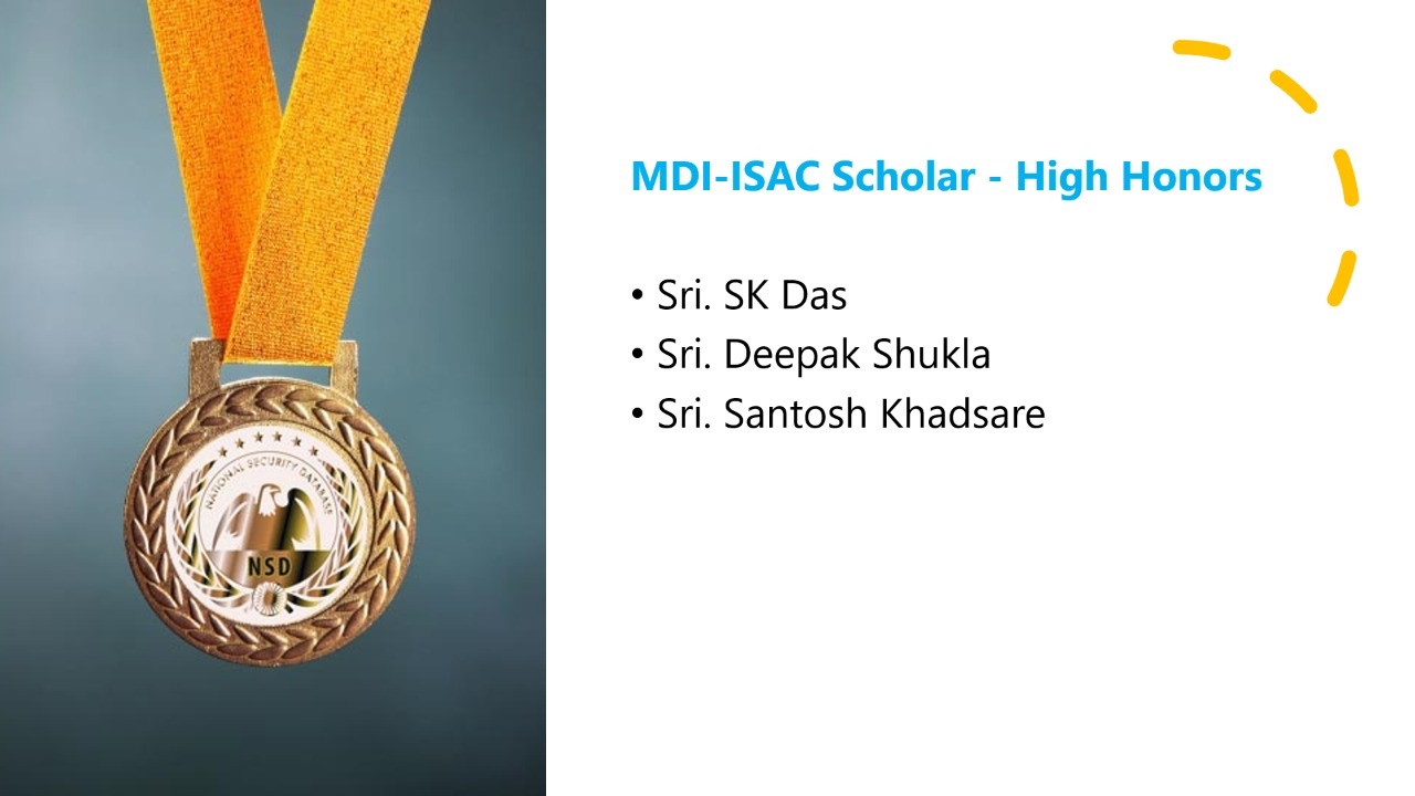 Shri Sanjay Kumar Das, WBCS(Exe.), Joint Secretary, IT&E Department, Govt. of West Bengal and Member-Secretary, CS-CoE topped the programme and received the MDI-ISAC Scholar High Honors for his performance in the entire programme.